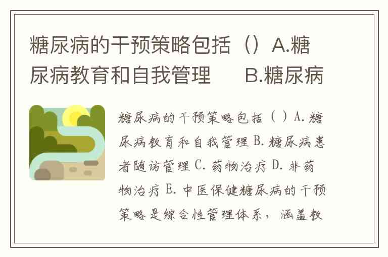 糖尿病的干预策略包括()A.糖尿病教育和自我管理 B.糖尿病患者随访管理 C.药物治疗 D.非药物治疗 E.中医保健