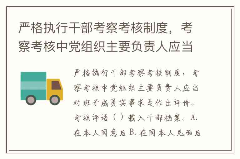 严格执行干部考察考核制度,考察考核中党组织主要负责人应当对班子成员实事求是作出评价。考核评语()载入干部档案。A.在本人同意后 B.在同本人见面后 C.考核结束后 D.考察结束后