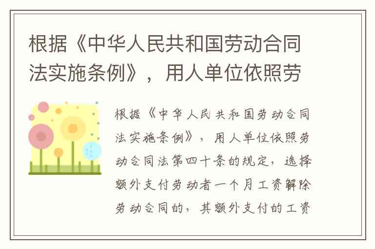 根据《中华人民共和国劳动合同法实施条例》,用人单位依照劳动合同法第四十条的规定,选择额外支付劳动者一个月工资解除劳动合同的,其额外支付的工资应当按照该劳动者()的工资标准确定。A.当月 B.上一个月 C.上一季度 D.上一年度