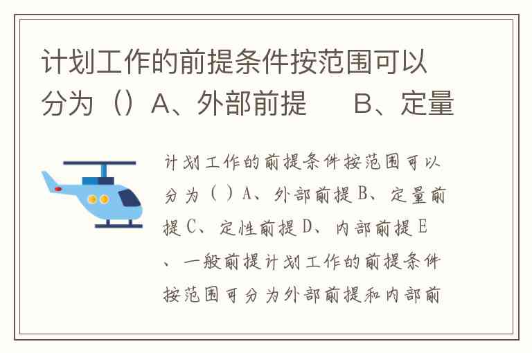 计划工作的前提条件按范围可以分为()A、外部前提 B、定量前提 C、定性前提 D、内部前提 E、一般前提