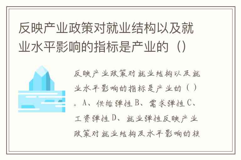 反映产业政策对就业结构以及就业水平影响的指标是产业的()。A、供给弹性 B、需求弹性 C、工资弹性 D、就业弹性