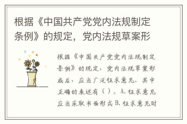根据《中国共产党党内法规制定条例》,党内法规草案形成后广泛征求意见的规定中,正确表述为 B、C、D 三项。这一制度设计体现了党内民主与群众路线的统一,既确保法规制定的科学性,又增强其社会基础。