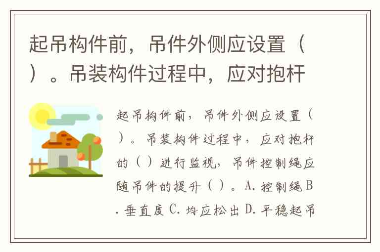 起吊构件前,吊件外侧应设置()。吊装构件过程中,应对抱杆的()进行监视,吊件控制绳应随吊件的提升()。A.控制绳 B.垂直度 C.均应松出 D.平稳