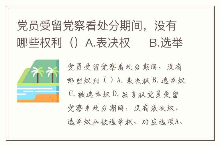 党员受留党察看处分期间,没有哪些权利()A.表决权 B.选举权 C.被选举权 D.发言权