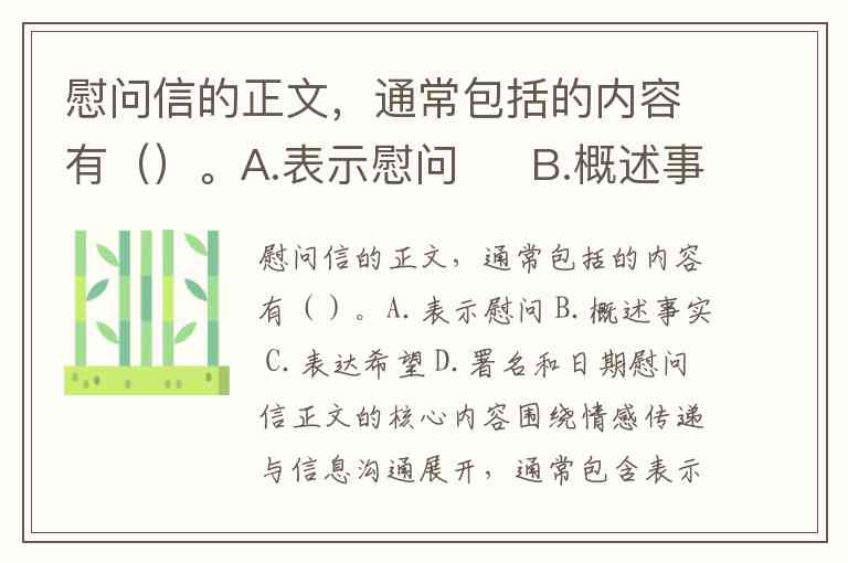 慰问信的正文,通常包括的内容有()。A.表示慰问 B.概述事实 C.表达希望 D.署名和日期
