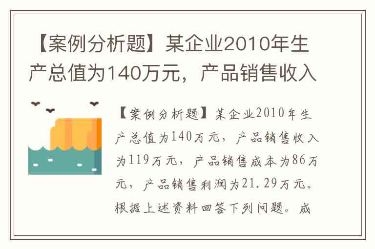 【案例分析题】某企业2010年生产总值为140万元,产品销售收入为119万元,产品销售成本为86万元,产品销售利润为21.29万元。根据上述资料回答下列问题。成本利润率为()。A.21.56% B.24.76% C.25.34% D.27.37%