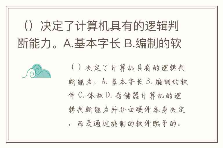 ()决定了计算机具有的逻辑判断能力。A.基本字长 B.编制的软件 C.体积 D.存储器