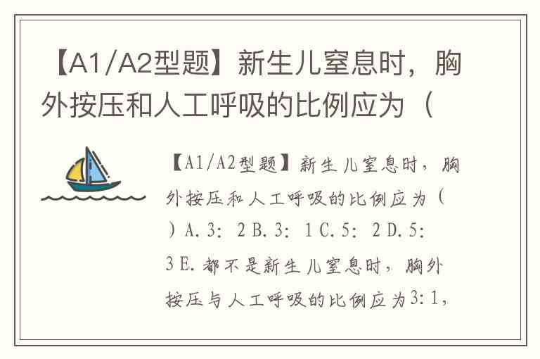 【A1/A2型题】新生儿窒息时,胸外按压和人工呼吸的比例应为()A.3:2 B.3:1 C.5:2 D.5:3 E.都不是