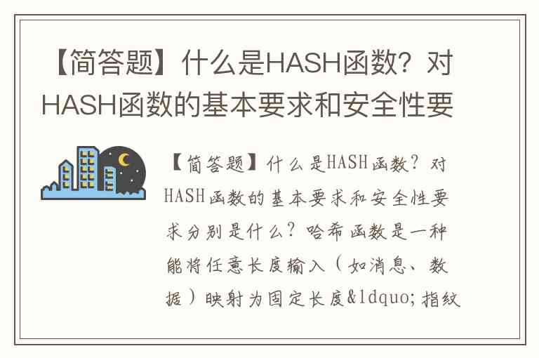 【简答题】什么是HASH函数?对HASH函数的基本要求和安全性要求分别是什么?