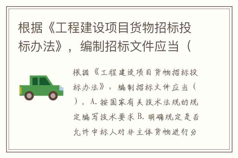 根据《工程建设项目货物招标投标办法》,编制招标文件应当()。A.按国家有关技术法规的规定编写技术要求 B.明确规定是否允许中标人对非主体货物进行分包 C.要求标明特定的专利技术和设计 D.明确规定提交备选方案的投标价格不得高于主选方案 E.用醒目方式标明实质性要求和条件