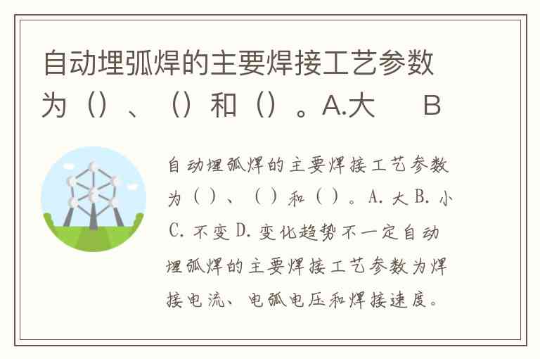 自动埋弧焊的主要焊接工艺参数为()、()和()。A.大 B.小 C.不变 D.变化趋势不一定