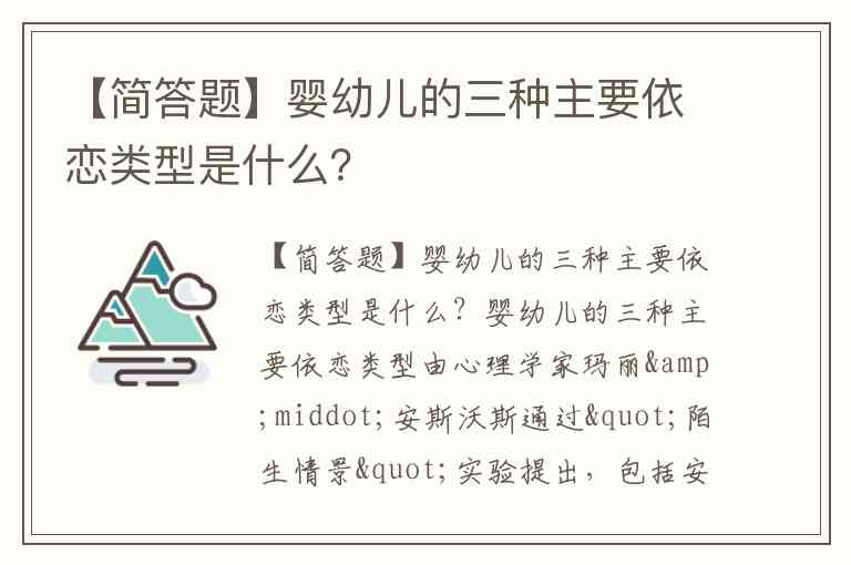 【简答题】婴幼儿的三种主要依恋类型是什么?