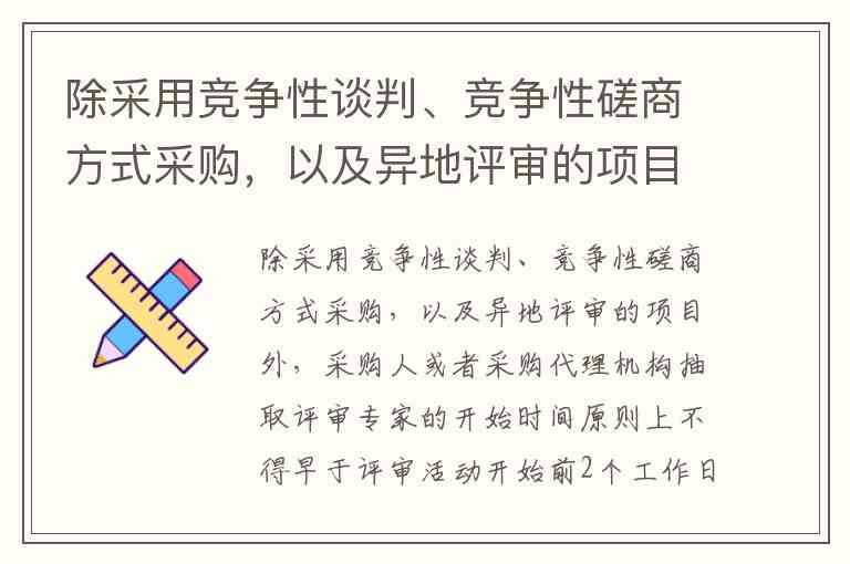 除采用竞争性谈判、竞争性磋商方式采购,以及异地评审的项目外,采购人或者采购代理机构抽取评审专家的开始时间原则上不得早于评审活动开始前2个工作日。其主要目的是()。A.方便财政部门对专家抽取工作的管理 B.方便采购人或采购代理机构的专家抽取工作 C.减少已抽取的评审专家名单泄密的可能性 D.方便评审专家安排时间参加评审