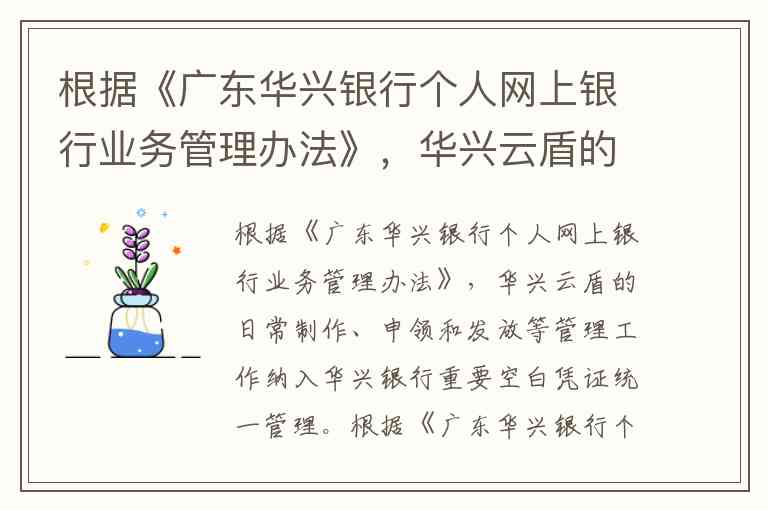 根据《广东华兴银行个人网上银行业务管理办法》,华兴云盾的日常制作、申领和发放等管理工作纳入华兴银行重要空白凭证统一管理。