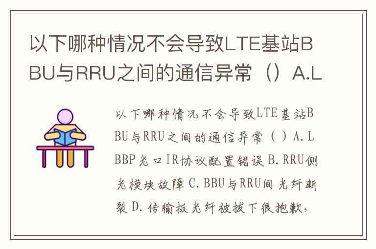 以下哪种情况不会导致LTE基站BBU与RRU之间的通信异常()A.LBBP光口IR协议配置错误 B.RRU侧光模块故障 C.BBU与RRU间光纤断裂 D.传输板光纤被拔下