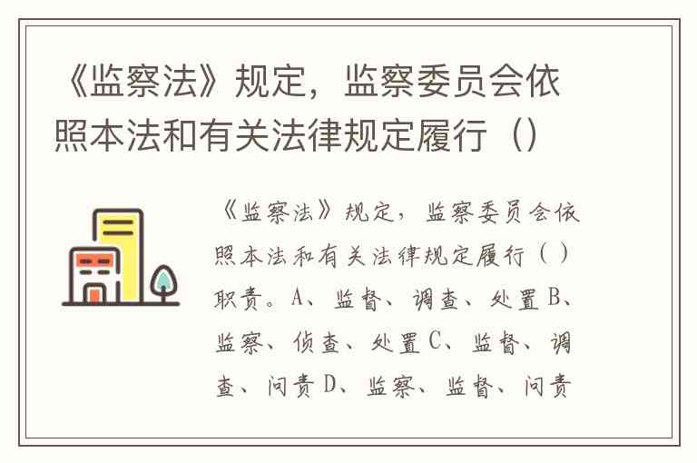 《监察法》规定,监察委员会依照本法和有关法律规定履行()职责。A、监督、调查、处置 B、监察、侦查、处置 C、监督、调查、问责 D、监察、监督、问责