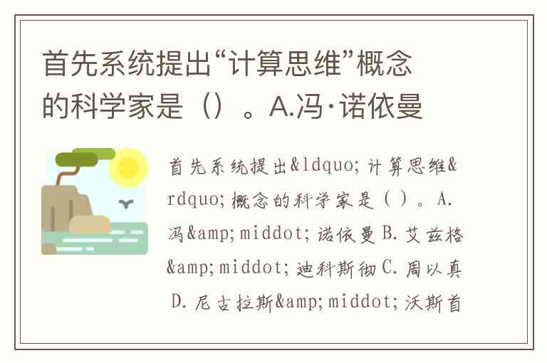 首先系统提出“计算思维”概念的科学家是()。A.冯·诺依曼 B.艾兹格·迪科斯彻 C.周以真 D.尼古拉斯·沃斯