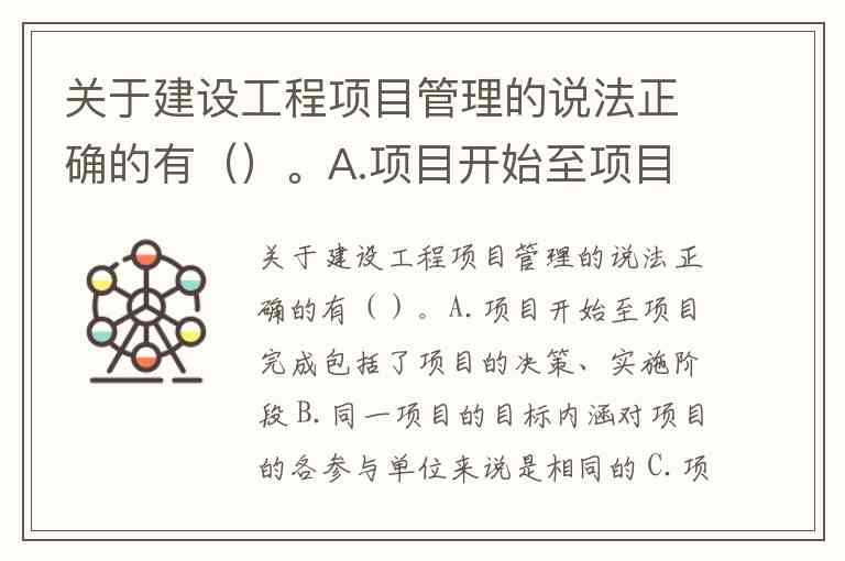 建设工程项目管理的核心是通过策划与控制实现目标,其时间范围、参与方目标差异和阶段任务划分是理解这一领域的关键。以下对各选项的分析基于行业权威定义和实践规范: