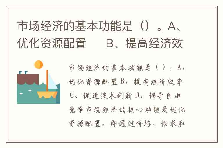 市场经济的基本功能是()。A、优化资源配置 B、提高经济效率 C、促进技术创新 D、倡导自由竞争