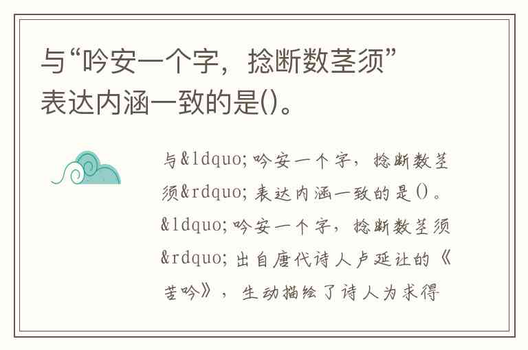 与“吟安一个字,捻断数茎须”表达内涵一致的是()。