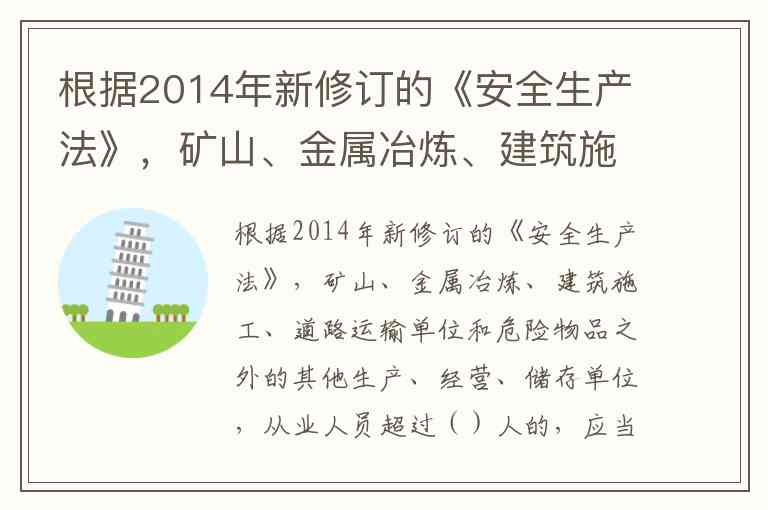 根据2014年新修订的《安全生产法》,矿山、金属冶炼、建筑施工、道路运输单位和危险物品之外的其他生产、经营、储存单位,从业人员超过()人的,应当设置安全生产管理机构或配备专职安全生产管理人员。A.100 B.200 C.300 D.400