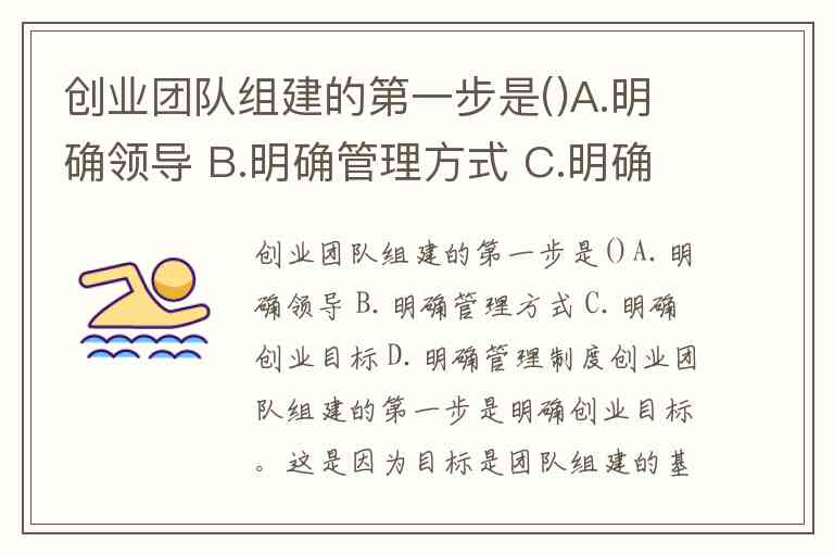 创业团队组建的第一步是()A.明确领导 B.明确管理方式 C.明确创业目标 D.明确管理制度