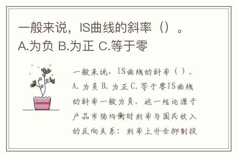 一般来说,IS曲线的斜率()。A.为负 B.为正 C.等于零
