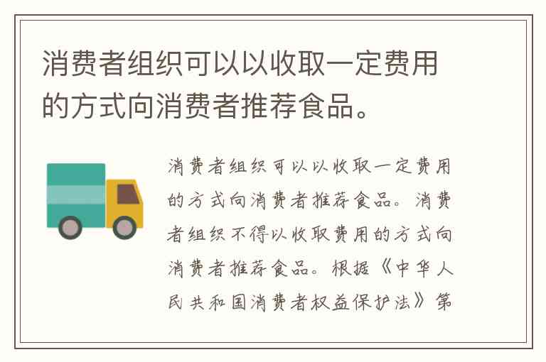 消费者组织可以以收取一定费用的方式向消费者推荐食品。