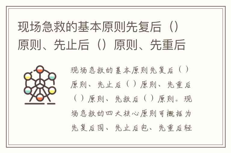 现场急救的四大核心原则可概括为先复后固、先止后包、先重后轻、先救后运,这些原则构建了“生命优先、分步处置”的急救逻辑,在创伤救援中能显著降低死亡率和伤残率。