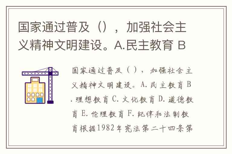 国家通过普及(),加强社会主义精神文明建设。A.民主教育 B.理想教育 C.文化教育 D.道德教育 E.伦理教育 F.纪律和法制教育