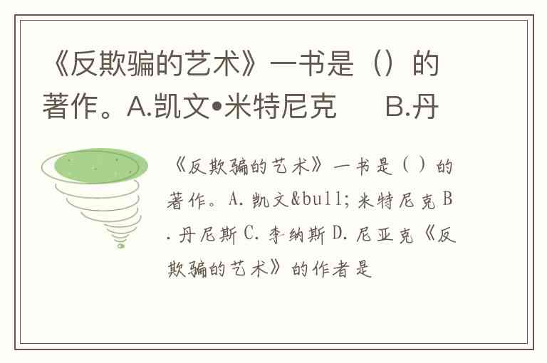 《反欺骗的艺术》一书是()的著作。A.凯文•米特尼克 B.丹尼斯 C.李纳斯 D.尼亚克