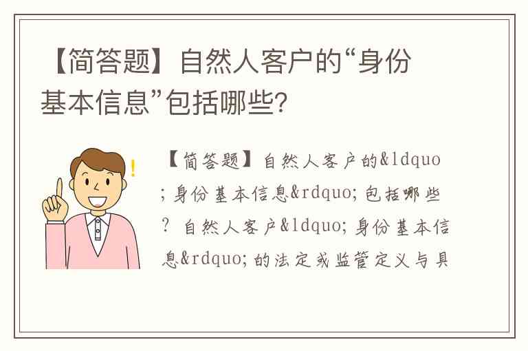自然人客户“身份基本信息”的法定或监管定义与具
