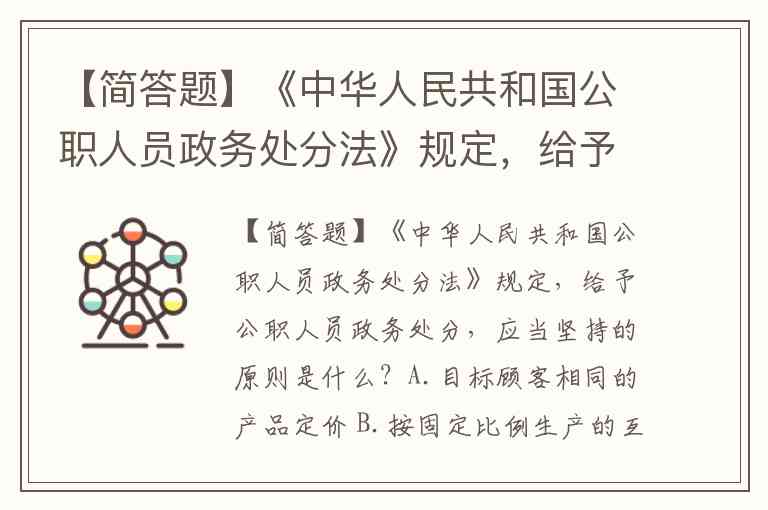 【简答题】《中华人民共和国公职人员政务处分法》规定,给予公职人员政务处分,应当坚持的原则是什么?A.目标顾客相同的产品定价 B.按固定比例生产的互联产品定价 C.按变动比例生产的互联产品定价 D.地理位置相近产品定价
