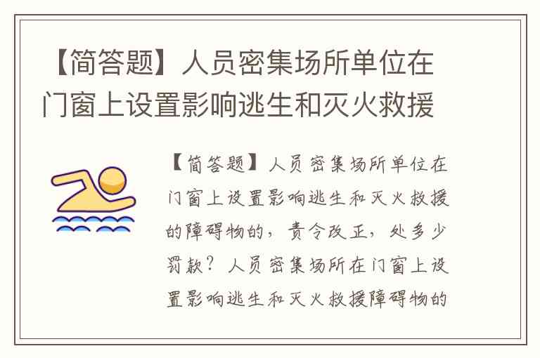 【简答题】人员密集场所单位在门窗上设置影响逃生和灭火救援的障碍物的,责令改正,处多少罚款?