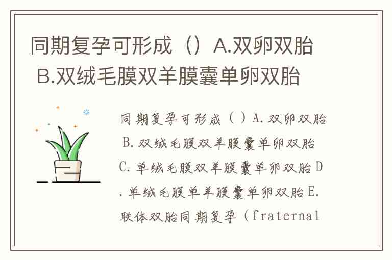 同期复孕可形成()A.双卵双胎 B.双绒毛膜双羊膜囊单卵双胎 C.单绒毛膜双羊膜囊单卵双胎 D.单绒毛膜单羊膜囊单卵双胎 E.联体双胎
