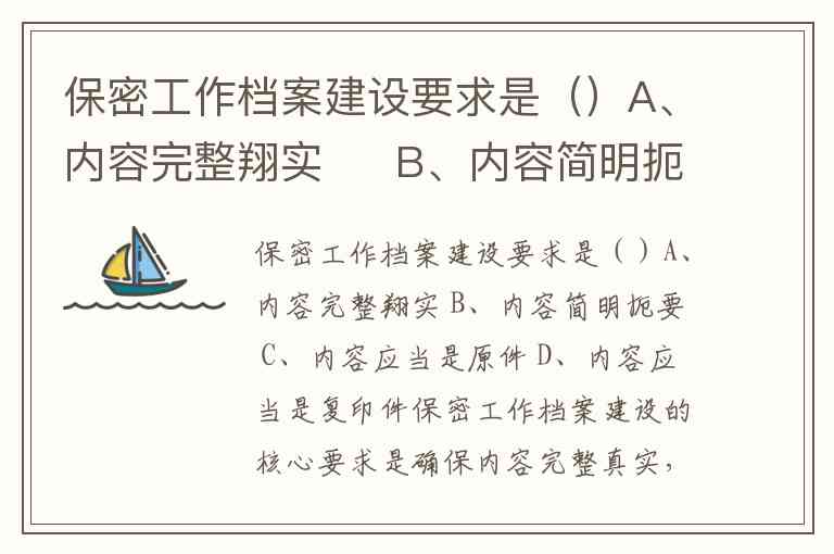 保密工作档案建设要求是()A、内容完整翔实 B、内容简明扼要 C、内容应当是原件 D、内容应当是复印件