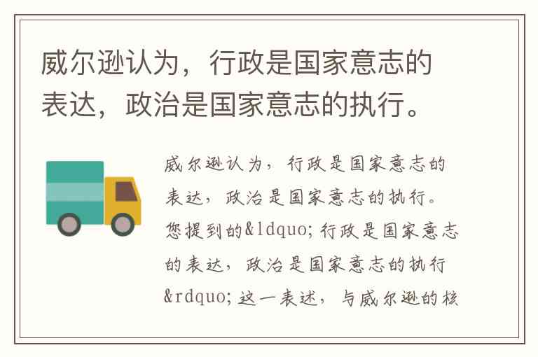 威尔逊认为,行政是国家意志的表达,政治是国家意志的执行。