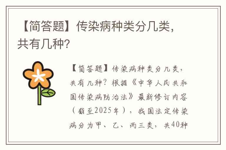 根据《中华人民共和国传染病防治法》最新修订内容(截至2025年),我国法定传染病分为甲、乙、丙三类,共40种。这一分类体系基于传染病的危害程度、传播速度及防控难度,实施动态调整管理。