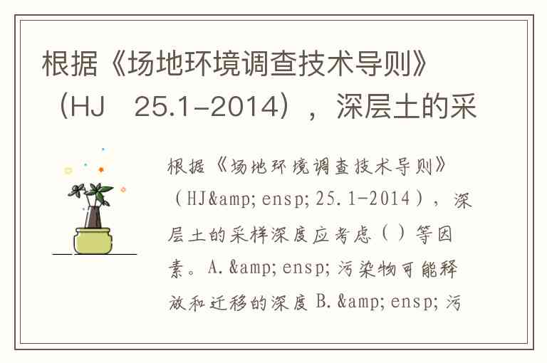 根据《场地环境调查技术导则》(HJ 25.1-2014),深层土的采样深度应考虑()等因素。A. 污染物可能释放和迁移的深度 B. 污染物性质 C. 土壤的质地和孔隙度 D. 地下水位和回填土
