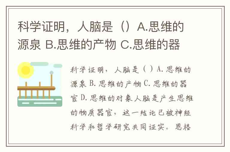 科学证明,人脑是()A.思维的源泉 B.思维的产物 C.思维的器官 D.思维的对象