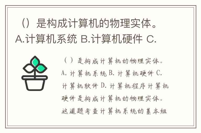 ()是构成计算机的物理实体。A.计算机系统 B.计算机硬件 C.计算机软件 D.计算机程序