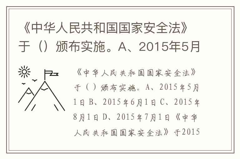 《中华人民共和国国家安全法》于()颁布实施。A、2015年5月1日 B、2015年6月1日 C、2015年8月1日 D、2015年7月1日