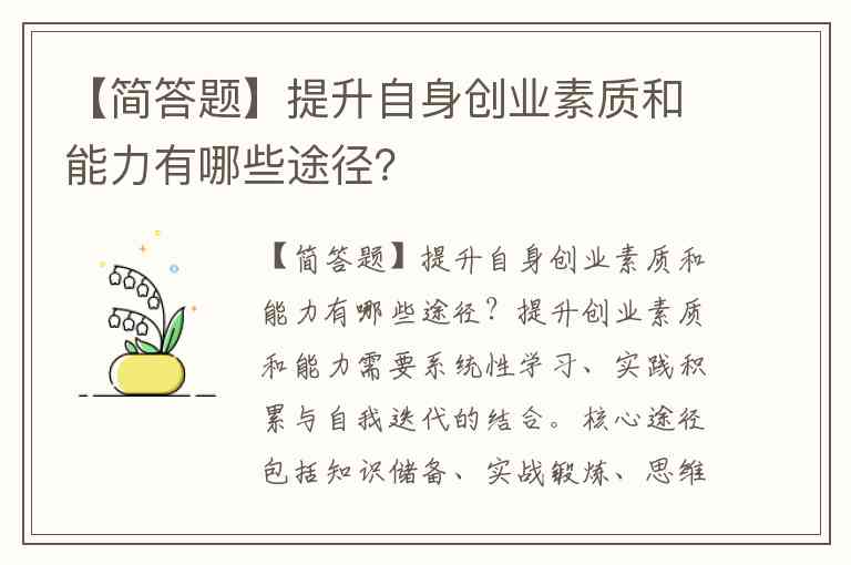 提升创业素质和能力需要系统性学习、实践积累与自我迭代的结合。核心途径包括知识储备、实战锻炼、思维培养、资源整合及心理建设五个维度,它们相互支撑,共同构成创业者的能力体系。