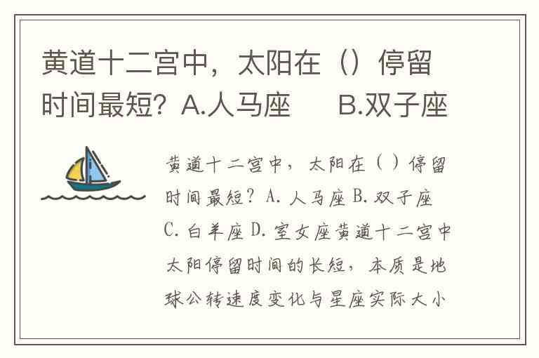 黄道十二宫中,太阳在()停留时间最短?A.人马座 B.双子座 C.白羊座 D.室女座