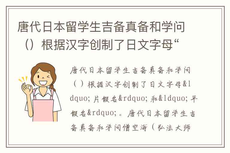 唐代日本留学生吉备真备和学问()根据汉字创制了日文字母“片假名”和“平假名”。
