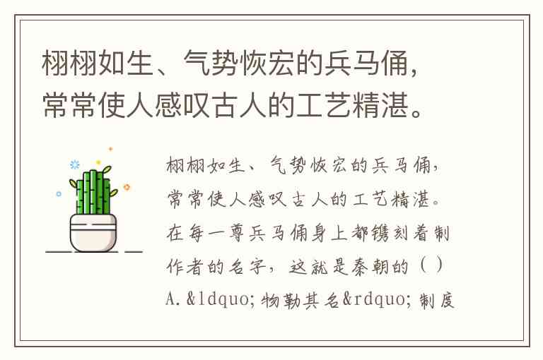 栩栩如生、气势恢宏的兵马俑,常常使人感叹古人的工艺精湛。在每一尊兵马俑身上都镌刻着制作者的名字,这就是秦朝的()A.“物勒其名”制度 B.“物有其名”制度 C.“物勒其人”制度 D.“物类其名”制度