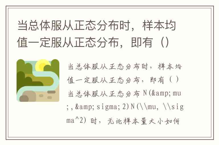 当总体服从正态分布时,样本均值一定服从正态分布,即有()