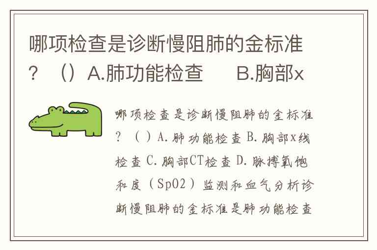 哪项检查是诊断慢阻肺的金标准?()A.肺功能检查 B.胸部x线检查 C.胸部CT检查 D.脉搏氧饱和度(SpO2)监测和血气分析