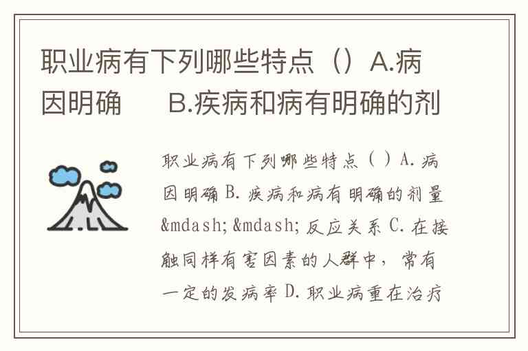 职业病有下列哪些特点()A.病因明确 B.疾病和病有明确的剂量——反应关系 C.在接触同样有害因素的人群中,常有一定的发病率 D.职业病重在治疗