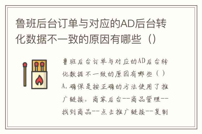 鲁班后台订单与对应的AD后台转化数据不一致的原因有哪些()A.确保是按正确的方法使用了推广链接。商家后台--商品管理--找到商品--点击推广链接--复制--粘贴至AD后台广告计划推广链接中 B.重复下单AD后台不会识别 C.预览下单或分享下单等AD不会识别。AD仅识别自信息流入口进入且下单的转化行为 D.两个后台非实时联动,有时间差